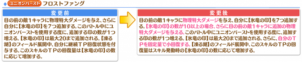 【凍る湖】のフィールド展開中、このスキルのTPの回復量はスキル発動時の【氷竜の印】の数に応じて増加する。